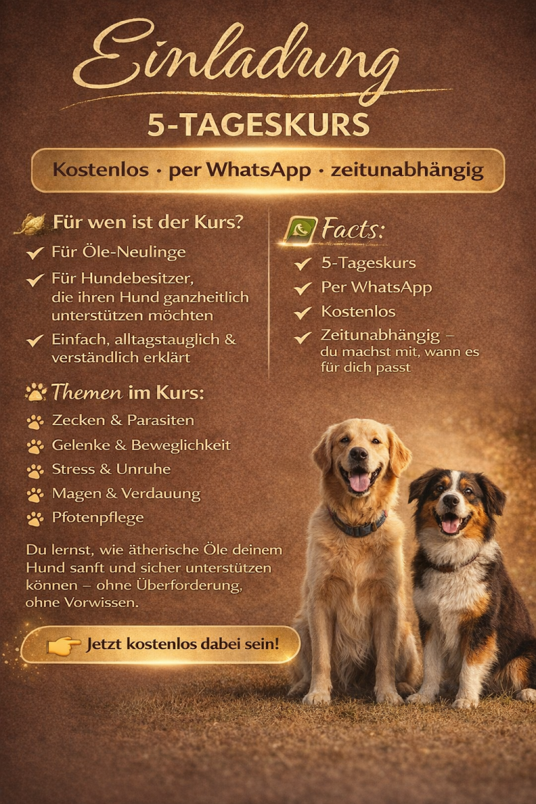 Mit ätherischen Ölen kannst du deinen Hund auf sanfte, natürliche Weise unterstützen – körperlich, emotional und energetisch.